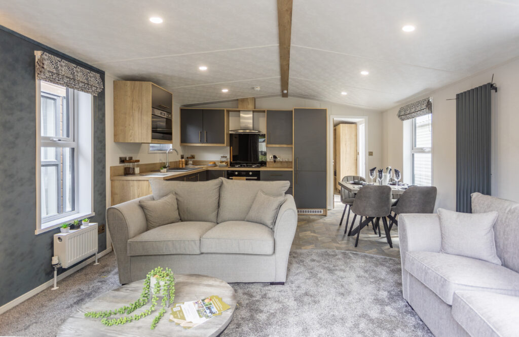 Our timeless classic and the foundation of our range. With a sophisticated blend of greys, oak finishes and navy blue feature walls, it strikes the perfect balance between neutral tones and stylish flair. Its thoughtfully designed interiors offer a sense of understated luxury, making it the ideal lodge for those who appreciate quality and elegance.