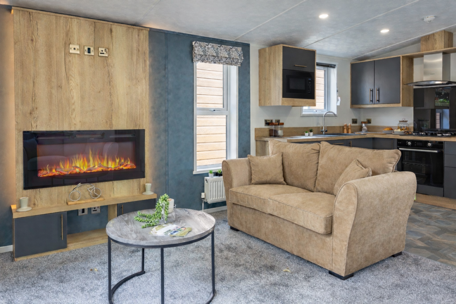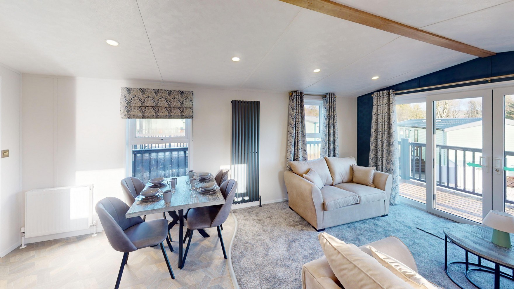 Our timeless classic and the foundation of our holiday lodge range. With a sophisticated blend of greys, oak finishes and navy blue feature walls, it strikes the perfect balance between neutral tones and stylish flair. Its thoughtfully designed interiors offer a sense of understated luxury, making it the ideal holiday lodge for those who appreciate quality and elegance.